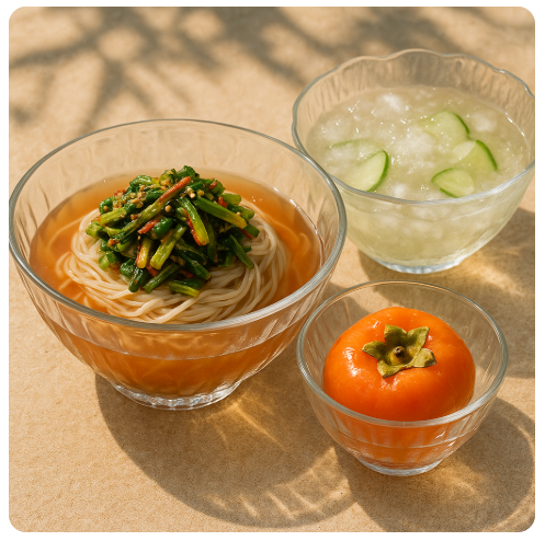 한국의 여름은 무덥고 습한 날씨로 유명합니다. 이런 날씨에는 입맛도 떨어지고 쉽게 지치기 마련이죠. 그래서 여름철에는 몸을 식혀주고 입맛을 돋워주는 음식이 큰 사랑을 받습니다. 이 글에서는 여름철 대표 보양 음식이라기보다는, 더위를 시원하게 날려주는 세 가지 별미—열무국수, 냉국, 아이스홍시—에 대해 자세히 알아보겠습니다. 각각의 음식이 갖는 매력과 특징, 그리고 건강에 미치는 영향까지 함께 정리해 드립니다.