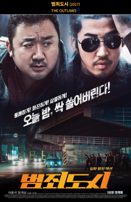 범죄도시 2017은 영화가 끝난 뒤에도 여러 곳에서 다시 찾아보는 관객이 많은 작품이다. 시리즈 후속 편이 나오기 전 다시 보고 관람하는 사람들이 많다는 것 자체가 이 영화의 완성도를 증명한다. 마동석의 압도적인 피지컬, 윤계상의 잔혹한 악역 연기, 실화 기반의 현실감까지 범죄 액션 영화로서 갖춰야 할 것들을 완벽하게 담아낸 작품이다. 마석도와 장첸의 대결이 어떻게 마무리되는지는 직접 확인해 보길 바란다.