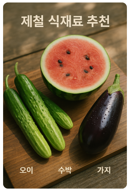 여름은 다양한 제철 식재료가 풍성한 계절입니다. 특히 더위에 지친 몸을 달래주고 수분과 영양을 보충해주는 채소와 과일이 많아, 건강한 식단을 구성하기에 이상적인 시기입니다. 이 글에서는 여름철을 대표하는 제철 식재료인 오이, 수박, 가지의 특징과 건강 효능, 활용법까지 상세하게 살펴봅니다. 식탁 위에 계절을 올리는 방법, 지금 바로 시작해보세요.